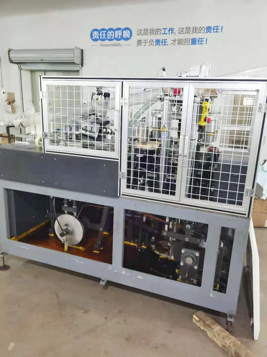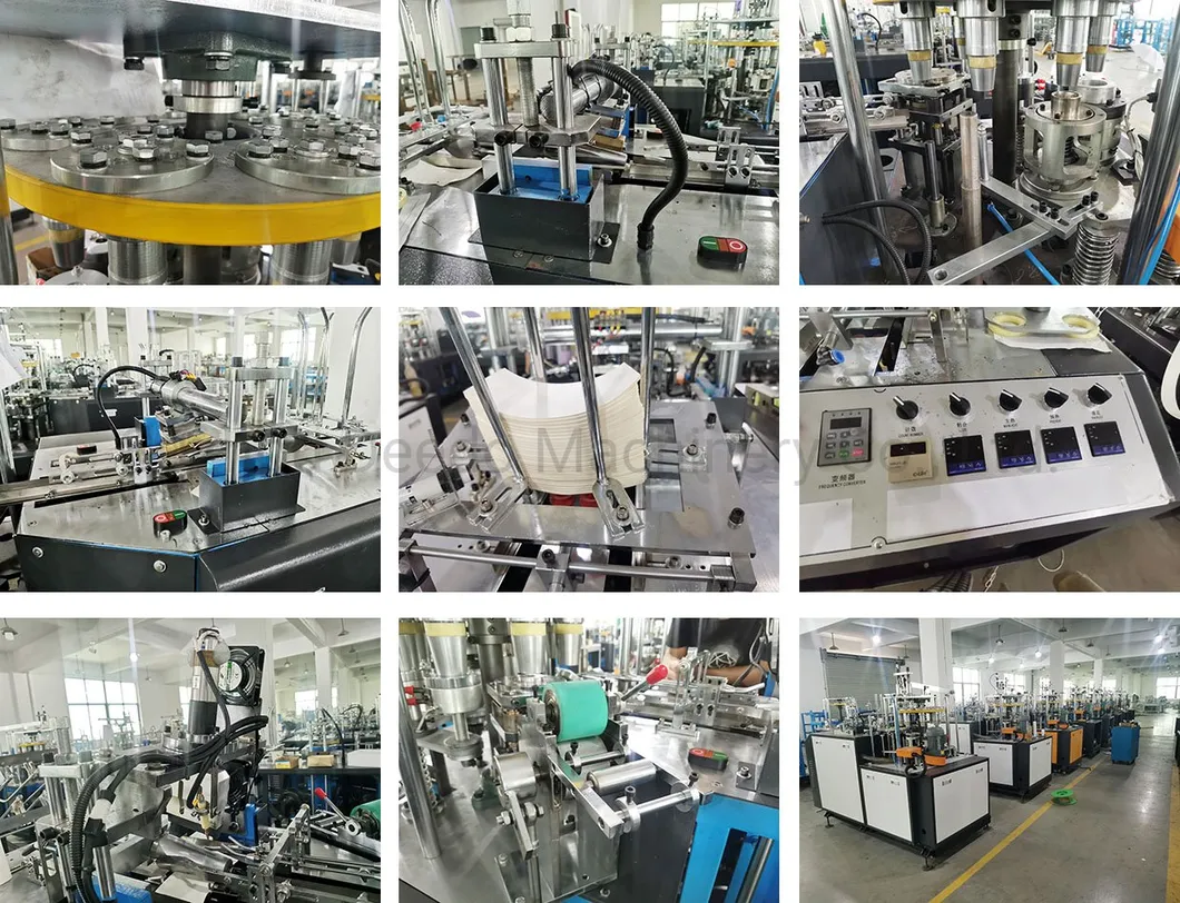 This drinking paper cup machine is advanced equipment designed for both single PE and double PE paper. It features fully automatic paper feeding, forming, accounting, and warning systems. Compared to traditional low-speed models, this machine is significantly faster and more stable, driven by a gear system (no chain) with automatic oil lubrication, PLC control, and ultrasonic collection.